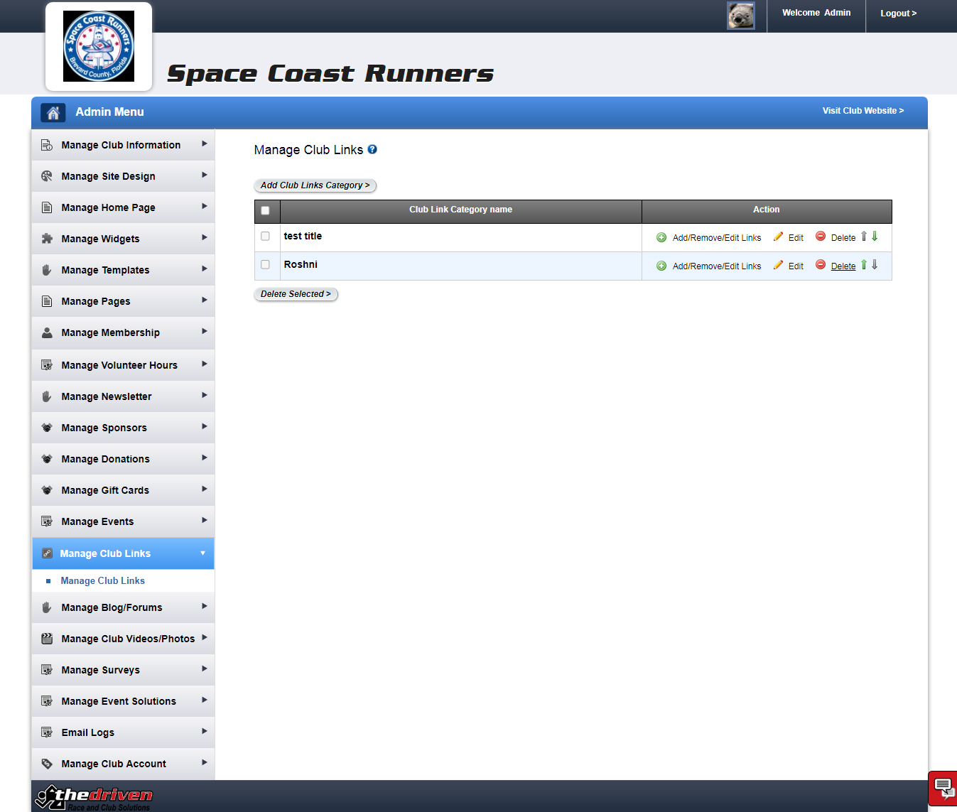 Add and manage links to websites that your club members might be interested in , such as local events. These links will be displayed when your members simply click on the Club Links tab on your club site.